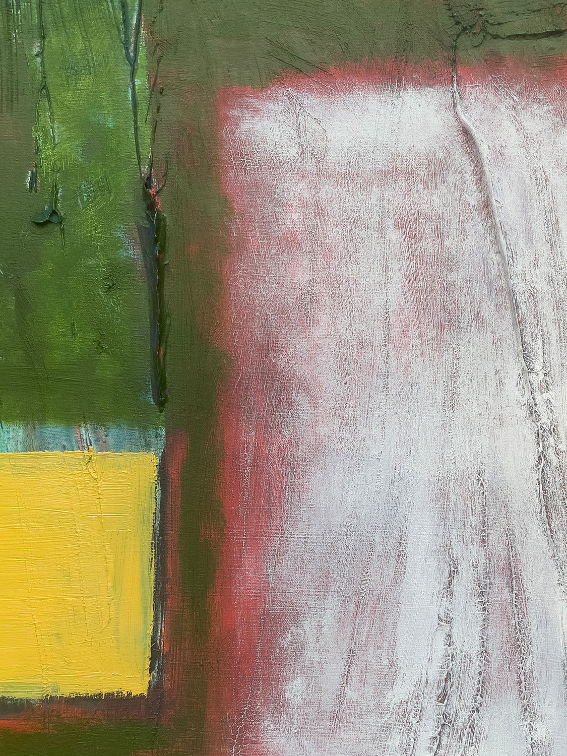 Max Ruf: Untitled (four yellow rectangles, green field, white field, red inbetween), 2014-2018 (detail)