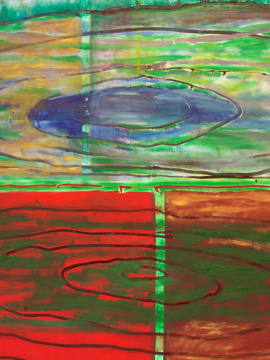 Max Ruf: Untitled (two concentric circles, top, bottom, blue, green, yellow, red), 2020-2022 (detail)